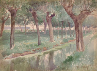 Au cours des dix années où les Bell-Smith vécurent à Hamilton et à Toronto, Frederic Marlett se mit aussi à enseigner à l’Ontario School of Art et à faire de l’illustration à la pige pour des publications comme le Canadian Illustrated News de Montréal et ce qui deviendrait Picturesque Canada […] (Toronto) [V. Lucius Richard O’Brien*]. Il travaillait toujours pour un studio de photographie et exposait des tableaux presque chaque année. Inscrit à l’Académie royale des arts du Canada dès la fondation en 1880, il obtint le titre d’académicien six ans plus tard. Cette décennie fut assombrie par la mort de l’un de ses trois fils, Charles Robert, en 1881. La même année, la famille s’installa à London. Dans une localité voisine, St Thomas, Bell-Smith obtint les postes de directeur artistique et de professeur de diction à l’Alma Ladies’ College. Peu après, la Central School de London l’engagea comme maître de dessin. Bell-Smith fonda la Western Art League et parcourut l’Europe et l’Amérique du Nord afin de faire des croquis. Au cours d’un séjour ultérieur à Paris, il étudierait à l’Académie Colarossi et avec des artistes tels Benjamin-Constant, Gustave Courtois, Joseph Blanc et Edmond-Louis Dupain.