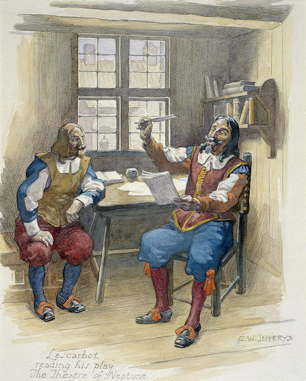 Yet his Théâtre de Neptune, which is part of the Muses, does offer some interest. It is a kind of nautical spectacle, organized to celebrate Poutrincourt’s return to Port-Royal. The god Neptune comes in a bark to bid the traveller welcome; he is surrounded by a court of Tritons and Indigenous people, who recite in turn, in French, Gascon, and Souriquois verse, the praises of the leaders of the colony, and then sing in chorus to the glory of the king while trumpets sound and cannon are fired. This performance, given on 14 Nov. 1606 in the impressive setting of the Port-Royal basin, was the first theatrical presentation in the French language in North America.