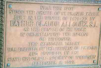 In the United States, and especially in Wisconsin, Father Allouez’s memory has always been venerated. In 1899 the Wisconsin Historical Society erected a monument to him at De Pere. It is of interest to note that the then secretary of the Society was Reuben Gold Thwaites, the peerless editor of the collection of Jesuit Relations and allied documents.