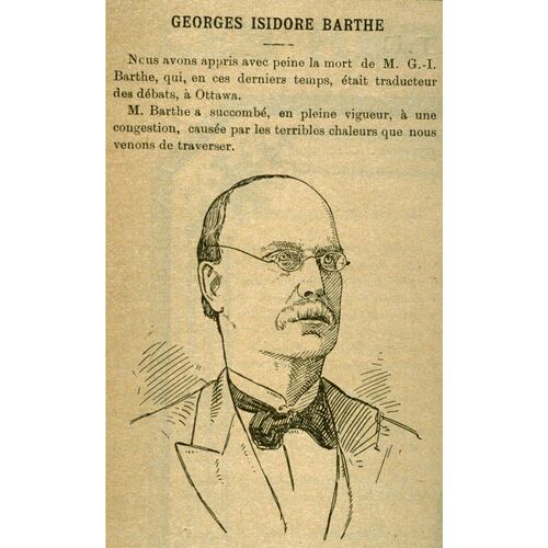 Guildo Rousseau, “BARTHE, GEORGES-ISIDORE (baptized Isidore),” in Dictionary of Canadian Biography, vol. 12, University of Toronto/Université Laval, 2003–, accessed December 14, 2025, https://www.biographi.ca/en/bio/barthe_georges_isidore_12E.html.