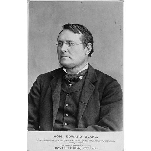 Ben Forster and Jonathan Swainger, “BLAKE, EDWARD (baptized Dominick Edward),” in Dictionary of Canadian Biography, vol. 14, University of Toronto/Université Laval, 2003–, accessed December 17, 2025, https://www.biographi.ca/en/bio/blake_edward_14E.html.