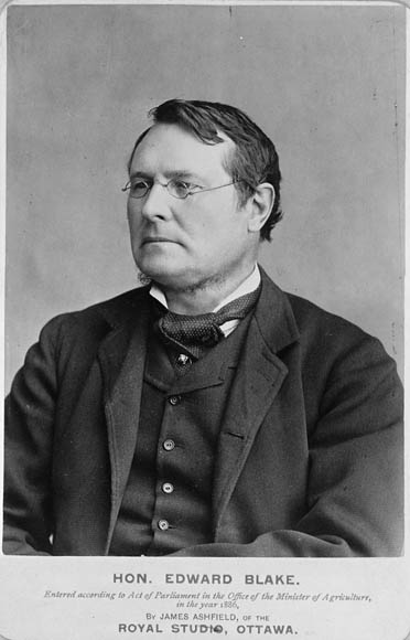 Ben Forster and Jonathan Swainger, “BLAKE, EDWARD (baptized Dominick Edward),” in Dictionary of Canadian Biography, vol. 14, University of Toronto/Université Laval, 2003–, accessed December 18, 2025, https://www.biographi.ca/en/bio/blake_edward_14E.html.