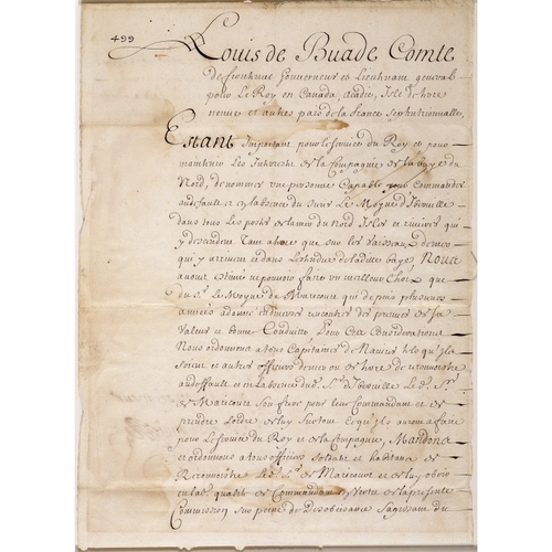The expedition against New York, with Frontenac in command, was delayed six weeks at La Rochelle owing to lack of crews for the ships. When it finally sailed on 23 July it encountered strong head winds and did not reach Quebec until 12 October. It was, by this time, too late in the season to undertake the overland assault on Albany and Manhattan and the enterprise was abandoned. When Frontenac now took stock of the situation with which he was faced, it was anything but reassuring. He had to defend the colony against the Iroquois who were continuing their devastating attacks on the settlements; face the possibility of attacks by the English colonies; and at the same time afford military aid to the Indian allies in the west. He had under his command a sizable force of regular troops, some 1,400 in all, as well as the Canadian militia, and in addition he had three very capable men to assist him: the intendant Jean Bochart* de Champigny, Louis-Hector de Callière, the governor of Montreal, and Philippe de Rigaud* de Vaudreuil, commander of the regular troops. They were men of exceptionally strong character, not lacking in influence at the court – Callière’s brother, for example, was one of Louis XIV’s private secretaries – thus Frontenac had to defer to their judgement in many things. At the same time, he was in a much stronger position than he had been during his first term as governor, for within a year of his appointment, the Marquis de Seignelay, Colbert’s son and successor, died and was succeeded by Frontenac’s kinsman, Louis Phélypeaux de Pontchartrain. When Frontenac learned that his relative had been appointed minister of Finance and minister of Marine, his personal ambitions and expectations rose considerably. The position of governor-general of New France, so eagerly sought after a short time earlier, now seemed inadequate. Immediately upon hearing of Pontchartrain’s appointment he wrote to request that he be given a more important and less arduous post. He stated that he was confident the minister would not wish to see a member of his own family fall into decrepitude and end his days without adequate means, without befitting dignity, and without the distinction his long services merited. This plea met with no response from the minister, although it was repeated year after year.