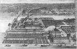 In 1861 Alexander’s brother died unexpectedly, leaving him the sole owner of all the enterprises, which he had to reorganize. In Hamilton he went into partnership with George Boyd until 1865, and then with his nephew David Gillies, under the name of Buntin, Gillies and Company. In Toronto he was in business with George Boyd and John Young Reid from 1861 to 1878 and with Reid alone from 1878 to 1893 (the firm exists today as Buntin Reid Paper). But he himself remained the sole owner of the Valleyfield plant. To meet the growing demands of the domestic market, he improved the equipment in his mill. Between 1866 and 1869 he introduced a mechanical pulp process perfected by Heinrich Voelter, a German, from an invention by Friedrich Gottlob Keller which involved three machines: a “defibrer,” a refiner, and a sorter made of wire-gauze cylinders. Buntin had read about this process in a trade journal and had gone to Germany around 1865 to see how the machines worked. He ordered at least two “defibrers,” which were in operation at Valleyfield by 1869. The mill used debarked, foot-long logs of Manitoba maple eight to ten inches in diameter. It was said to be a first in North America. Other improvements followed. The plant eventually had three Fourdrinier machines varying in width from 60 to 84 inches, and devices turning out some 20,000 envelopes a day. Around 1879 it began to sell pulp in England. Until the mid 1880s the plant continued to be one of the most advanced in the paper industry. But in 1891 it was in decline after Buntin lost interest and chose to diversify his investments rather than modernize his equipment: at this time his fixed capital was evaluated at $120,000 and his assets at $150,000; he had 72 employees, including 22 women, on his payroll.