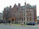 In 1880–81 a second commission for McMaster – McMaster Hall, built to house the Toronto Baptist College and now the Royal Conservatory of Music – combined elements of Richardsonian Romanesque, “Queen Anne,” and High Victorian Gothic in a bold but not altogether satisfactory exploration of eclecticism. In the Army and Navy Store on King Street East, executed in two phases between 1887 and 1890, Burke achieved a more considered synthesis of traditional motifs and utilitarian materials when he framed a three-storey, plate-glass façade within a single monumental arch. This propensity for innovation challenged the traditions of the Langley office, where, by 1890, Burke was design partner. In 1892, faced with the entry of Langley’s son into the firm and despite a deepening economic recession, Burke struck out on his own, purchasing the prestigious practice of the late William George Storm*.