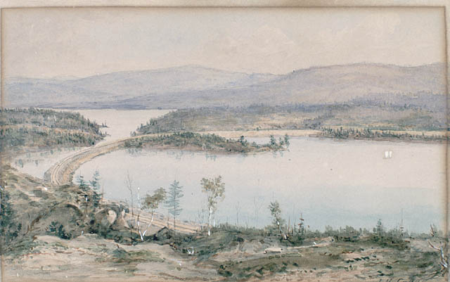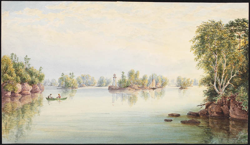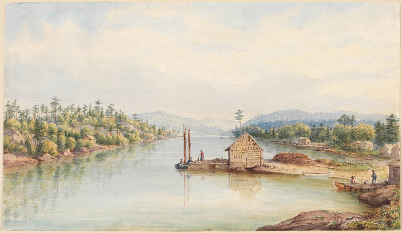 Caddy was a painstaking artist who worked slowly and carefully from pencil sketches made on the scene, through sepia drafts, to the finished picture. Apparently he sometimes completed several versions of the finished landscape but rarely, if ever, signed his work. He exhibited water-colours and oils in the annual provincial exhibitions from 1858 to 1868, winning awards for his meticulous landscapes, marines, and animal and flower studies. In London he had painted a portrait of Colonel Thomas Talbot*, but his strength was not in portraiture or in the figure. While in Canada he copied some scenes of Great Britain, Ireland, and the West Indies he had painted earlier. He did landscapes of scenes in and around Hamilton, Toronto, Brantford, Queenston, Niagara, and London, as well as farther afield, in the regions of Lake Huron, Georgian Bay, Muskoka, Lake Superior, the St Lawrence River, and New Brunswick. He also painted scenes of the Kawartha Lakes; his father and two younger brothers had taken up land in Douro Township in 1834 and were neighbours of the Stricklands, Traills, and Moodies. Caddy visited his family in Douro in 1841 where he likely met Samuel Strickland* but by that time the Traills and Moodies had moved. Other members of Caddy’s family, including his brothers Edward C. and Douglas T. as well as one of his own sons, were also amateur or professional artists.