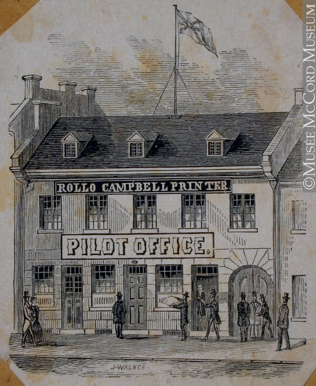 In May 1822 Rollo Campbell emigrated to Montreal from Greenock, Scotland, where he had learned his printer’s trade with several small weekly newspapers. In Canada he was employed as a printer by the Montreal Gazette and then by the Morning Courier, a Conservative commercial paper which he printed from its establishment in 1835 until 1836 or 1837. He was first a partner in the firm of John C. Becket, then on his own, and he soon nurtured his printing business into one of Canada’s biggest. He maintained branches in Toronto and Quebec in addition to his Montreal headquarters. Campbell printed the assembly’s Sessional papers from 1842 to 1859, and he often won contracts to print its Journals and the reports for almost every administrative department and agency. He also published the Weekly Register from 1844 to 1847 and the monthly Colonial Protestant during 1848. Besides government documents and newspapers, Campbell printed “Books, Pamphlets, Catalogues, Cards, Cheques, Funeral Cards, Circulars, Auction Bills, Railroad do., Steamboat do., Programmes, Bill Heads, Posters, and Labels.” He guaranteed his workmanship would be “equalled by few, surpassed by none, and on moderate terms.” Campbell’s business soon made him wealthy enough to own valuable real estate and to satisfy certain political ambitions, common enough to contemporary printers.