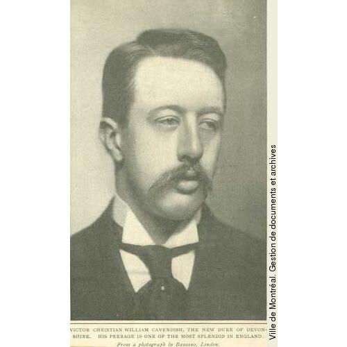 CAVENDISH, VICTOR CHRISTIAN WILLIAM, 9th Duke of DEVONSHIRE, governor general; b. 31 May 1868 in London, England, eldest son of Lord Edward Cavendish and Emma Elizabeth Lascelles; m. there 30 July 1892 Lady Evelyn Emily Mary Petty-Fitzmaurice (d. 1960), elder daughter of the 5th Marquess of Lansdowne [Petty-Fitzmaurice*], and they had two sons and five daughters; d. 6 May 1938 at Chatsworth House, Derbyshire, England.