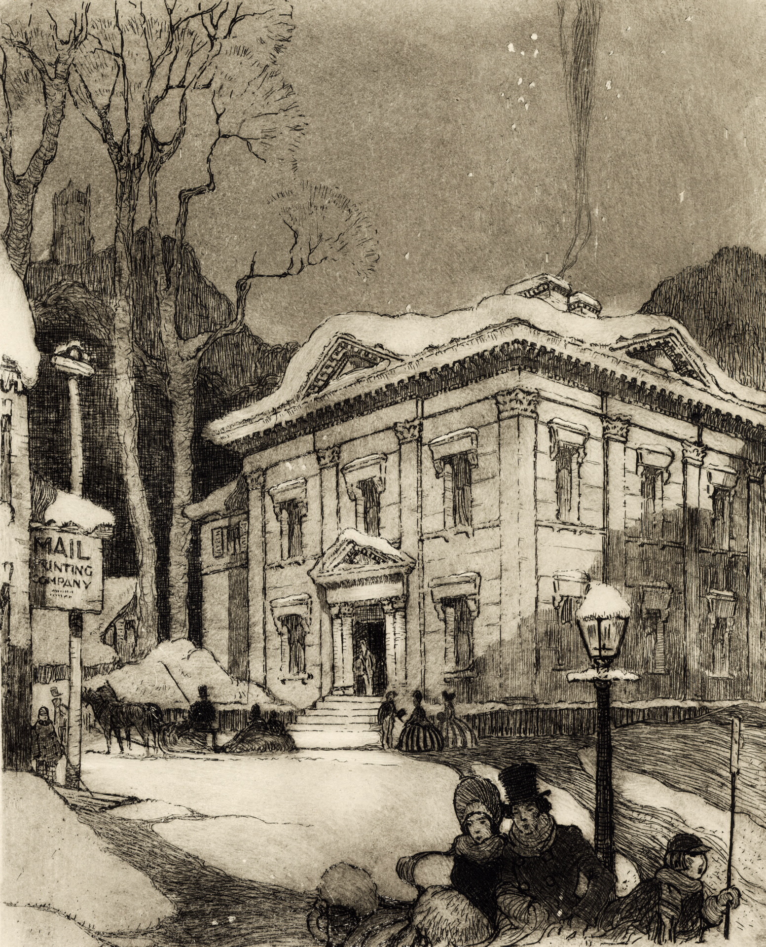 While living there he built a large and handsome house at Bay and King streets. It was completed in 1853 and there he passed the rest of his days. Designed in classical style by Joseph Sheard, it was constructed of cut stone, with roof timbers hand-hewn and fastened together by wooden pegs. The house was in the area of Cawthra’s principal business interests, for he owned downtown property bought by his father or himself. The rents in that district rose in value and no doubt constituted the greater part of Cawthra’s income. He also, however, made loans of a conservative character, on the security of real estate or of bank and government bonds and was a large holder of bank stocks. He was a director of the Bank of Toronto and of one or two companies. He had at least one secretary or agent, but as he does not appear to have had a business address he evidently conducted his affairs from his house.