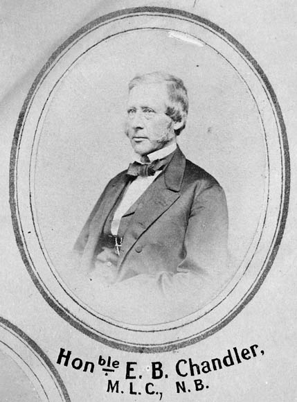 In the fall of 1864, Chandler went as a New Brunswick delegate to the Quebec conference and participated in the drafting of the 72 resolutions. He made ardent representations against John A. Macdonald*’s case for a strong central authority, though he soon recognized that he was fighting a losing battle. Faced with the defeat of his stand on provincial rights, Chandler nevertheless acknowledged the inevitability of confederation and took comfort in the strong Maritime representation in the Senate, which he interpreted as an absolute guarantee that the Upper Canadians would not dominate the new union.