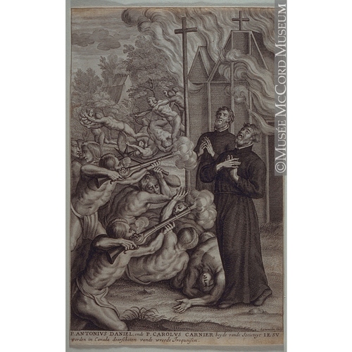 He made rapid progress in learning the language, and he had soon taught the children to sing the Pater and the Credo in Huron. His kindness, his gentleness, and his gifts as a teacher caused him to be assigned to a new apostolate that the missionaries, in their lack of experience of the actual circumstances, thought both feasible and full of promise for the propagation of the faith: the founding at Quebec of a seminary to which young Hurons would come to be trained in Christian knowledge and virtues. So great were the hopes aroused by this foundation that Huronia sacrificed for it one of its best missionaries, and the Jesuits at Quebec deprived themselves of the services of five very useful servants. Two years’ experience was to show that the children of Huronia were not suited to, and not suitable for, this European type of education. The splendid dream came to naught, and brought about Father Daniel’s return to active missionary life. He devoted himself to it indefatigably and effectively for ten years. On 4 July 1648 the Iroquois overran the Saint-Joseph II mission (Teanaostaiaë, near Hillsdale, Simcoe County, Ontario) just as Father Daniel was finishing his mass. He encouraged the neophytes and spoke so movingly of the truths of the faith that the pagans in large numbers asked him to baptize them. After wreaking havoc in the village, the Iroquois attacked the chapel: “Flee,” said the missionary to his congregation, “and keep the faith to your dying breath.” As for himself, his life belonged to the souls in his charge. He left the chapel and strode towards the enemy, who were astonished by such courage. When the first moment of stupefaction had passed, his body was riddled with arrows. A bullet struck him in the chest, passing through his body, and he fell uttering the name of Jesus. After desecrating his body, the Iroquois threw it into the fire that was consuming the chapel. As the first martyr of Huronia, Father Daniel, even after his death, inspired in his brother missionaries a wealth of tenderness and encouragement. The Relation for 1649 has preserved two instances of this for us.