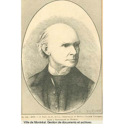 Out of office, Day’s differences with the Reform party were soon resolved. On 1 Jan. 1850 he was raised to puisne judge of the Superior Court by the Reform government of Baldwin and Louis-Hippolyte La Fontaine* and in the mid 1850s he became a strong supporter of the prominent Liberal, John Young*, and of his schemes to improve transportation facilities on Lac Saint-Pierre. As a judge, one of Day’s most exacting tasks was to help untangle the complex claims created by the abolition of seigneurial tenure in 1854 [see Lewis Thomas Drummond]. In 1859 the Conservative government of George-Étienne Cartier* and John A. Macdonald* named Day to the commission to codify the civil law of Lower Canada, a task which he shared with Augustin-Norbert Morin* and René-Édouard Caron* and which occupied the next six years of his life. Accepting particular responsibility for drafting sections of the code relating to commercial matters, Day accomplished for the commission what probably constitutes his most significant legal contribution. In 1865 he was appointed to a commission to determine the amount of government subsidy to be paid railway companies carrying the provincial post, and in that same year became the Hudson’s Bay Company’s attorney in a lengthy case in which the company pressed claims against the United States government arising out of the Oregon treaties of 1846 and 1863. Meanwhile, in 1868 Day became the province of Quebec’s arbitrator to divide and adjust “the credits, liabilities, properties and assets” resulting from the former union of the two Canadas. Finally in 1873 John A. Macdonald appointed Day to the royal commission to report on Lucius Seth Huntington’s charges of corruption against the Conservative government for its handling of the proposed Canadian Pacific Railway charter.