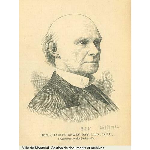 But Day’s most important educational work was with the Royal Institution for the Advancement of Learning, the provincial body responsible for higher education. A member of the institution’s board of governors, he served as its president from 1852 to 1884, and as principal pro tempore of McGill College from 1853 to 1855 and chancellor of the university from 1864 to 1884. With Christopher Dunkin he engrafted the faculty of law onto McGill in 1848, and affiliated to it as well the High School of Montreal, the McGill Normal School (Montreal), St Francis College (Richmond), and Morrin College (Quebec). It was Day, too, who in 1852 insisted on amending the Royal Institution’s statutes, thereby ending the old antagonism between it and McGill College’s directors [see John Bethune*]. Day pressed for the inclusion of science and modern literature in the curriculum and was responsible for the selection in 1855 of McGill’s most distinguished principal, John William Dawson*, who established the university’s academic reputation. Not only was Day the architect of McGill’s mid-century revival, but he also guided it through numerous legal and political difficulties. At his death in 1884 the university’s board of governors declared that McGill’s “progress and present prosperity in a great measure are due to his eminent ability and wise counsel.”