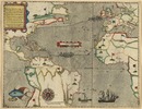 Jodocus Hondius: Vera Totius Expeditionis Nauticae showing route of Francis Drakes Circumnavigation of the globe.