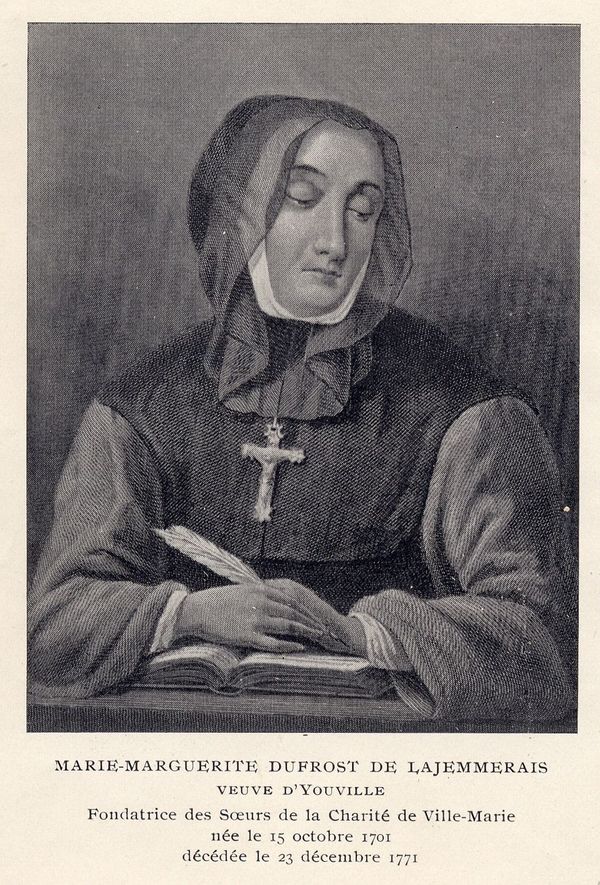 DUFROST DE LAJEMMERAIS, MARIE-MARGUERITE (Youville), founder of the Congregation of the Sisters of Charity of the Hôpital Général of Montreal (Grey Nuns); b. 15 Oct. 1701 at Varennes (Que.); d. 23 Dec. 1771 in Montreal.