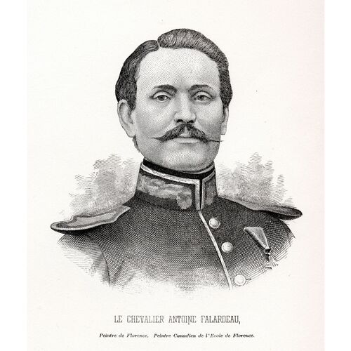 FALARDEAU, ANTOINE-SÉBASTIEN (baptized Antoine), painter; b. 13 Aug. 1822 at Cap-Santé, Lower Canada, son of Joseph Falardeau, a farmer, and Isabelle (Élizabeth) Savard (Savarre); m. 7 Sept. 1861 Caterina Mannucci-Benincasa in Florence, Italy; d. there 14 July 1889, drowned when his horse bolted, throwing him into the river.