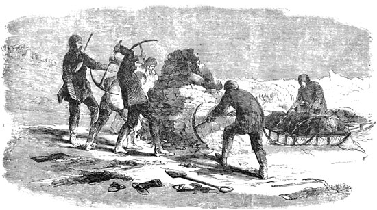 The expedition, consisting of 129 officers and men, sailed on 19 May 1845. In September 1846 the Erebus and Terror were caught in heavy ice off the west coast of King William Island. Almost nothing was known about this island, which had been visited by Europeans only briefly during John Ross’s 1829–33 expedition. It proved to be an exceptionally poor hunting area. At first, success must have seemed close, for the ships were only about 100 miles from the continental coastline, where the explorers knew they would find a clear route to the west. However, the ice remained an insuperable barrier. The ships withstood the ice pressure, but without fresh game to eat the men began to weaken.