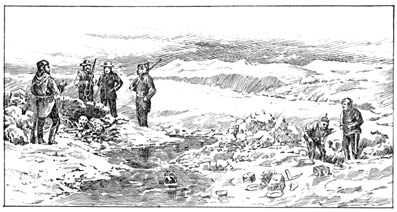 In the Athabasca district, the NWC was far more strongly established than the HBC. The explorers therefore stayed at the NWC’s Fort Chipewyan (Alta) rather than at the HBC post. Through correspondence with Willard Ferdinand Wentzel at Fort Providence (Old Fort Providence, N.W.T.), the NWC post on the northern shore of Great Slave Lake, Franklin arranged for an indigenous band known as Copper Indians – a subgroup of the Dene sometimes called the Yellowknives – to join the expedition as hunters. He also recruited a crew of NWC voyageurs. Unfortunately, Richardson and Hood brought far fewer provisions than had been expected. When the party left Fort Chipewyan on 18 July 1820, they had only enough food for about a week and had to live mainly by fishing along the way. They met the Yellowknife leader, Akaitcho, and his band near Fort Providence and then continued their journey northward on 2 Aug. 1820. A winter station, named Fort Enterprise, was established within easy reach of the Coppermine.