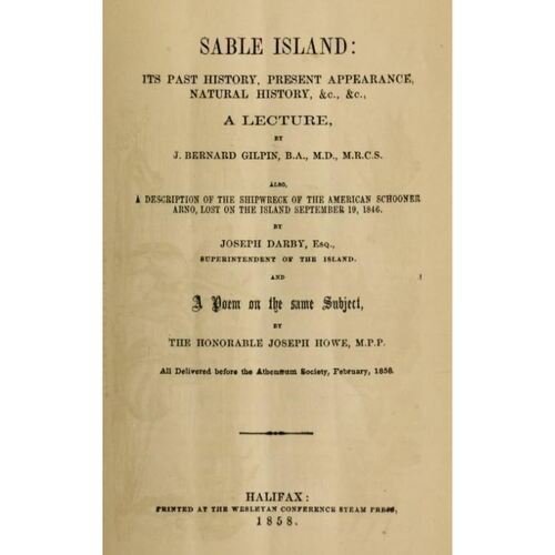Although Gilpin’s contributions to the medical profession in Nova Scotia were important, it is as a naturalist that he is chiefly remembered today. He had probably moved to Halifax in order to be close to others with similar literary and scientific interests. He remained a widower after his wife’s early death in 1851, and during the next 40 years he became deeply engrossed in the study of the fauna of Nova Scotia. A founder of the Nova Scotian Institute of Natural Science (later the Nova Scotian Institute of Science), on 2 Feb. 1863 he presented the first paper read before the society, on the common herring. As a member and president (1873–78) of this organization Gilpin gained a solid reputation in Canada and the United States in the latter half of the 19th century as a naturalist and zoologist. Over 20 years he gave a total of 34 papers, which were published in the transactions of the institute. His subject-matter included birds, fishes, seals, walruses, moose, beavers, serpents, and fossils, with a lengthy series being devoted to the mammalia of Nova Scotia. He also wrote on the Stone Age and on the Indians of the province. His lecture Sable Island: its past history, present appearance, natural history, &c., &c. was published in Halifax in 1858. The pamphlet also included a description by Joseph Darby of the shipwreck of the schooner Arno in 1846 and a poem by Joseph Howe*.