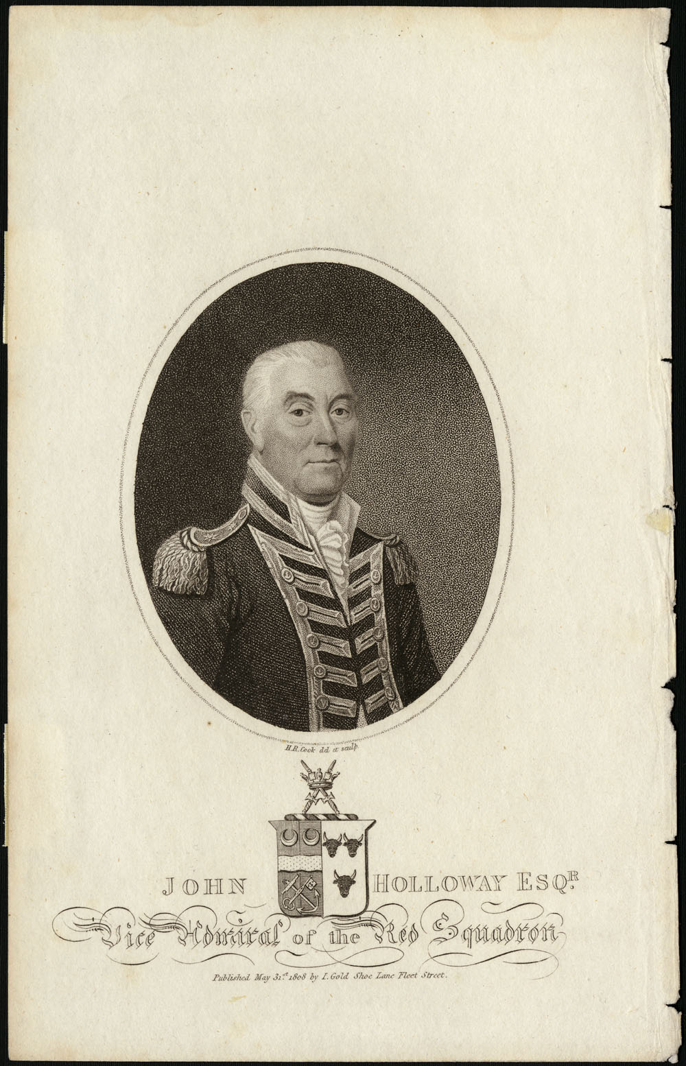 Holloway left the island in October 1809 and the same month was promoted admiral of the blue. On 31 July 1810 he was made admiral of the white. He died in his 80th year. Contemporary observers remarked on his “rigid honesty” and “blunt sincerity,” and found him “brave without ostentation, independent without being assuming . . . a deserving naval commander.”