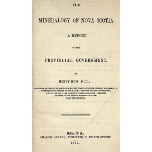 Henry How, Sketch of the mineralogy of Nova Scotia, as illustrated by the collections of minerals sent to the Paris Exhibition, 1867 (Halifax, 1867); The mineralogy of Nova Scotia: a report to the provincial government (Halifax, 1869).