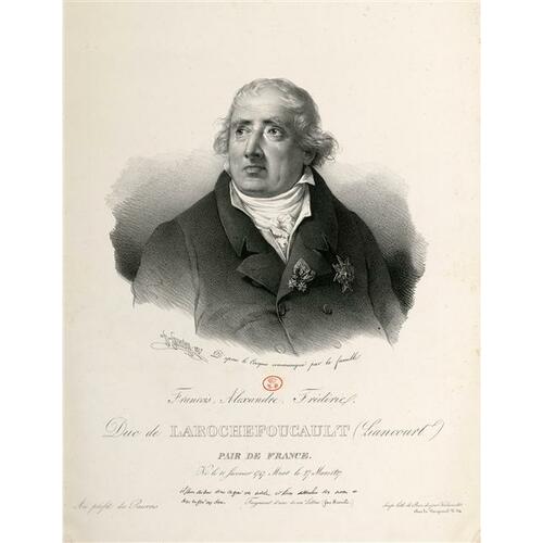 T. S. Webster, “LA ROCHEFOUCAULD, FRANÇOIS-ALEXANDRE-FRÉDÉRIC DE, Duc de LA ROCHEFOUCAULD-LIANCOURT, Duc d’ESTISSAC,” in Dictionary of Canadian Biography, vol. 6, University of Toronto/Université Laval, 2003–, accessed December 18, 2025, https://www.biographi.ca/en/bio/la_rochefoucauld_francois_alexandre_frederic_6E.html.