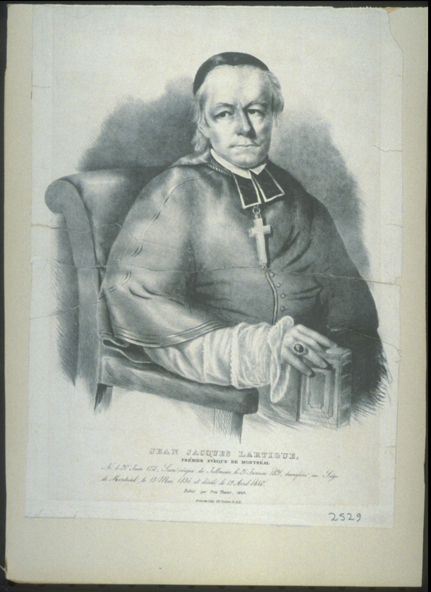 AAQ, 1 CB, VI–VIII; 26 CP, I–VII. ACAM, 255.109; 295.101, .103; 465.101; 583.000; 780.034; 901.012–18, .021–25, .028–29, .033, .037, .039, .041, .047, .050, .136–37, .150; RLL, I–III. Arch. de la Compagnie de Jésus, prov. du Canada français (Saint-Jérôme, Qué.), 2196, 3182–83. Arch. du séminaire de Saint-Sulpice (Paris), Fonds canadien, dossiers 22, 27–29, 52, 55, 59, 63, 67, 73–76, 79–89, 94, 98–99. ASQ, Fonds Viger-Verreau, sér.O, 0128. ASSM, 1bis; 21; 24, B; 27. PAC, MG 24, B2, 1, 2, 16–21; B6, 1–12; B46; J15. Allaire, Dictionnaire. F.-M. Bibaud, Dict. hist.; Le panthéon canadien (A. et V. Bibaud; 1891). Desrosiers, “Inv. de la corr. de Mgr Lartigue,” ANQ Rapport, 1941–42, 1942–43, 1943–44, 1944–45, 1945–46. G.-É. Giguère, “La restauration de la Compagnie de Jésus au Canada, 1839–1857” (thèse de phd, 2v., univ. de Montréal, 1965). J.-P. Langlois, “L’ecclésiologie mise en œuvre par Mgr Lartigue (relations église-état) durant les troubles de 1837–1838” (thèse de ll, univ. de Montréal, 1976). Anne McDermaid, “Bishop Lartigue and the first rebellion in the Montreal area” (ma thesis, Carleton Univ., Ottawa, 1967). Yvette Majerus, “L’éducation dans le diocèse de Montréal d’après la correspondance de ses deux premiers évêques, Mgr J.-J. Lartigue et Mgr I. Bourget, de 1820 à 1967” (thèse de phd, McGill Univ., Montréal, 1971). Léon Pouliot, Mgr Bourget et son temps, vol.1; Trois grands artisans du diocèse de Montréal (Montréal, 1936). L.-P. Tardif, “Le nationalisme religieux de Mgr Lartigue” (thèse de ll, univ. Laval, Québec, 1956). E.-J. [-A.] Auclair, “Le premier évêque de Montréal, Mgr Lartigue,” CCHA Rapport, 12 (1944–45): 111–19. François Beaudin, “L’influence de La Mennais sur Mgr Lartigue, premier évêque de Montréal,” RHAF, 25 (1971–72): 225–37. J.-H. Charland, “Mgr Jean-Jacques Lartigue, 1er évêque de Montréal (1777–1840),” Rev. canadienne, 23 (1887): 579–82.