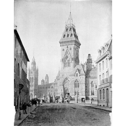 In May 1859 proposals were invited for Ottawa’s intended parliamentary and departmental buildings and governor general’s residence. Since Laver was absent from Ottawa in connection with his wedding in England for much of the time before the competition closed on 1 August, the greater part of the work in preparing their submission fell upon Stent. The first premium for the design of the departmental buildings, now known as the east and west blocks, was awarded to their proposal in the fashionable civil Gothic style, while their entry in the same style for the parliamentary building secured second prize. The winner in the latter case was the design, also in civil Gothic, by the Toronto partnership of Thomas Fuller and Chilion Jones. The east and west blocks and the Fuller and Jones library, which was spared in the centre block fire of 1916, comprise the surviving elements of the original complex.