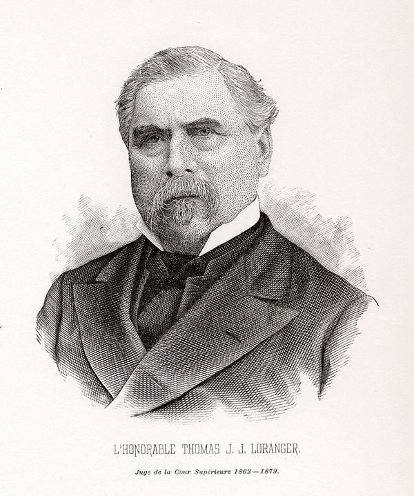 [The major works of Thomas-Jean-Jacques Loranger are: Mémoire composé de la plaidoirie de T. J. J. Loranger, c.r., un des substituts du procureur-général, devant la Cour seigneuriale (Montréal, 1855); Suite du mémoire de M. Loranger contenant sa réplique devant la Cour seigneuriale (Montréal, 1856); Commentaire sur le Code civil du Bas-Canada, A. E. Brassard, édit. (2v., Montréal, 1873–79). As president of the commission he published the Qué., Royal Commission, First report of the commissioners appointed to classify, revise and consolidate the general statutes of the province of Quebec (Quebec, 1878); Report of the commission appointed to revise and consolidate the statutes of the province of Quebec . . . (Quebec, 1881); and Judicial reforms proposed by the commission for the codification of the statutes: first report (Quebec, 1882). The last two works were also issued in French. In addition, he wrote Lettres sur l’interprétation de la constitution fédérale, dite l’Acte de l’Amérique britannique du Nord, 1867 (2v., Québec, 1883–84), which was translated into English and published under the title of Letters upon the interpretation of the federal constitution known as the British North America Act (1867) (2v., Quebec, 1884). For a fuller description of Loranger’s works and of articles about him in various periodicals, the reader should consult Ursule Loranger, “Bio-bibliographie de l’honorable juge Thomas-Jean-Jacques Loranger . . .” (a paper presented to the École de bibliothéconomie de l’univ. de Montréal, 1943). j.-c.b.]
