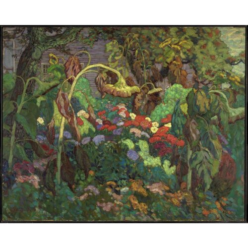 Early in 2015 it was announced that ten previously unknown works by MacDonald had been identified in a private collection. These items, said to have been buried in 1931 on a property the artist had purchased in Thornhill and not retrieved until 1974, were acquired by the Vancouver Art Gallery, and some were sent to the Canadian Conservation Instit. (CCI) in Ottawa for authentication. The CCI’s report was delivered in September 2016. On 15 December 2023 the gallery issued a press release, which was linked at the bottom of the web page about its exhibition J.E.H. MacDonald? A Tangled Garden (16 December 2023–24 May 2024). It stated: “Based on the results of subject matter experts, including research conducted by the CCI, the Gallery is announcing that the ten painted sketches will no longer be attributed to J.E.H. MacDonald—but rather, to an unknown painter.” The exhibition promised “visitors a rare and detailed look into how that conclusion was reached.”