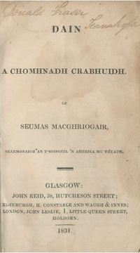 A full list of editions of MacGregor’s Dain a chomhnadh crabhuidh (the title varies slightly) has not been located. All the standard bibliographic sources contain incomplete lists. The following editions have been located: Glasgow, 1819 and 1825; Edinburgh, 1831; Glasgow, 1832; Edinburgh, [1847]; Pictou, 1861; and Edinburgh, 1870. Only some of these volumes have been personally examined; those held abroad have been reported to the author by the holding institutions. No confirmation has been found for the Glasgow, 1818 edition reported in H. J. Morgan, Bibliotheca Canadensis. Six additional poems by MacGregor appear in Dain Spioradail, edited by A. Maclean Sinclair (Edinburgh, 1880).