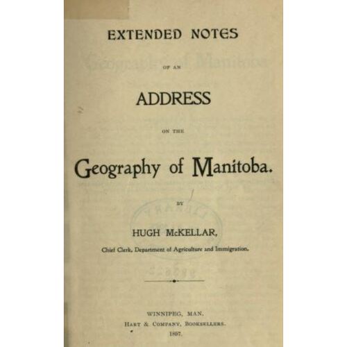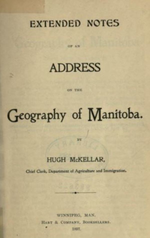 Hugh McKellar is the author of Extended notes of an address on the geography of Manitoba (Winnipeg, 1895).