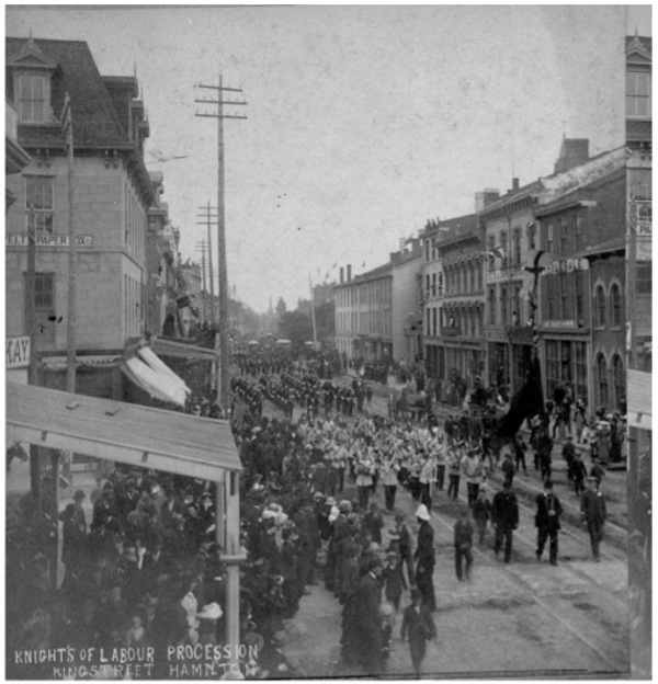 Women, under the leadership of McVicar, must have followed this advice. In January 1884, local assembly 3040, which included female textile workers and shoe operatives, was formed in Hamilton. In April of that year, the female shoe operatives split and formed their own Excelsior Assembly (local assembly 3179), the first local in Canada comprised exclusively of women, with McVicar as directress. Although the number of women who belonged to the two assemblies actually declined from 221 in 1884 to 67 in 1885, the Knights organized at least eight other women’s locals in Ontario in the 1880s and involved many other women workers in integrated locals. The first female representatives at the Trades and Labor Congress of Canada, beginning in 1886, were all Knights of Labor.