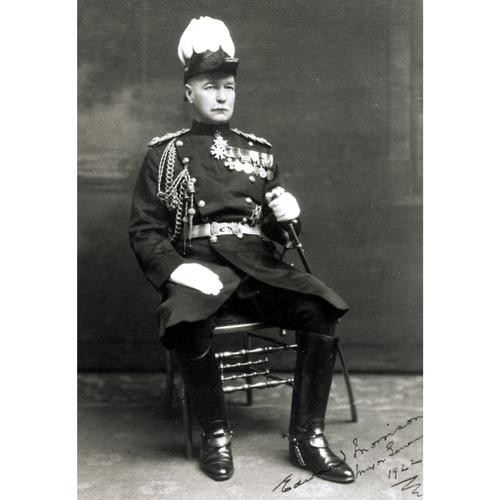 After returning from South Africa, Morrison continued to serve as a reservist until 1913, when he joined the Permanent Force as a lieutenant-colonel and director of artillery. With the outbreak of war in 1914 he went overseas with the first contingent of the Canadian Expeditionary Force, in command of the 1st Brigade, Canadian Field Artillery; John McCrae gave him his medical exam. After serving in the second battle of Ypres in April–May 1915, he reported how impressed he was with the coolness of his gunners in engagements that cost the 1st Canadian Division a third of its 18,000 troops. Then came Festubert and Givenchy-lez-La Bassée. Morrison was promoted brigadier-general on 13 Sept. 1915, to command the artillery of the 1st Canadian Division; in October he was appointed to command the 2nd Divisional Artillery. In this capacity he served through the battles of Saint-Eloi (Sint-Elooi), Sanctuary Wood, and Hooge, and through the bloody offensive along the Somme. On 18 Dec. 1916 he was made the general officer commanding the artillery of the Canadian Corps, a position he held during the battles of Vimy Ridge and Hill 70, which proved more successful, and less costly, than previous engagements. On 15 Aug. 1917, after gunners had expended prodigious amounts of ammunition supporting the infantry as it defended newly captured positions against counter-attacks, a staff officer from the British 1st Army noted that its commander was “appalled” at such profligacy. “So are the Germans,” was Morrison’s reply. He continued to serve as GOC artillery through the battles of Lens and Passchendaele, and the final offensives of 1918. He was promoted major-general on 31 July 1918.