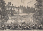 The Royal Canadian Academy of Arts was established by Lorne in 1880, and O’Brien became its first president, a position he held for ten years. He had been actively seeking a national status for the Ontario Society of Artists with Lorne’s predecessor, Lord Dufferin [Blackwood*], but had no difficulty now channelling his aspirations through this new body, especially with the vice-regal patronage it enjoyed. Lorne, in turn, valued O’Brien’s leadership qualities and his pre-eminence among Canadian artists. Integral to the concept of a Canadian academy was the establishment of a national gallery through the deposit of a “diploma” picture by each academician. O’Brien’s contribution, Sunrise on the Saguenay (1880), dominated the academy’s first exhibition, which opened in Ottawa in March 1880, and has been a prominent feature of the National Gallery of Canada’s collection ever since. His largest canvas, it introduced a striking use of diaphanous, pastel colours in a manner similar to that employed by Albert Bierstadt, a popular American painter whom O’Brien had come to know through both Dufferin and Lorne. In addition to purchasing a few paintings for the royal collection from this first exhibition, Lorne did not hesitate to take the more risky route of commissioning two new pictures from O’Brien, dramatic views of Quebec City that now hang in Buckingham Palace.