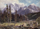 When the officers of the Canadian Pacific Railway, in particular William Cornelius Van Horne*, decided to send artists west on their newly completed line in 1886 in order to promote the mountains as a tourist destination, O’Brien naturally was the first to be invited. (He had done some illustration work for the CPR as early as 1883.) He left Toronto on 19 June with another Toronto artist, his friend John Colin Forbes, travelling directly to the Selkirks, in which region he passed the summer. O’Brien travelled west on the CPR on two more occasions. In 1887 he sketched from late June to mid August in the Banff, Lake Louise, and Kicking Horse Pass regions of the Rocky Mountains, and then worked his way west, reaching Victoria in September; he was home by the end of October. In June 1888 he went straight to Vancouver and spent the whole summer in Howe Sound and vicinity, travelling with two Chinook guides in a sailing canoe.