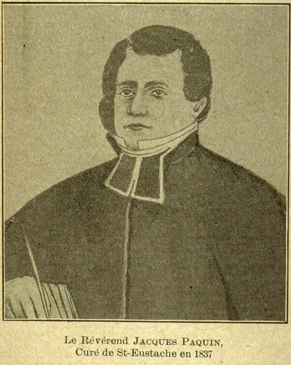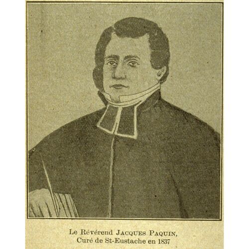 Jacques Paquin is the author of the pamphlet Journal historique des événemens arrivés à Saint-Eustache, pendant la rébellion du comté du lac des Deux Montagnes, depuis les soulèvemens commencés à la fin de novembre, jusqu’au moment où la tranquillité fut parfaitement rétablie (Montréal, 1838) and of the manuscript “Mémoire sur l’Église du Canada,” at PAC, MG 24, J15.
