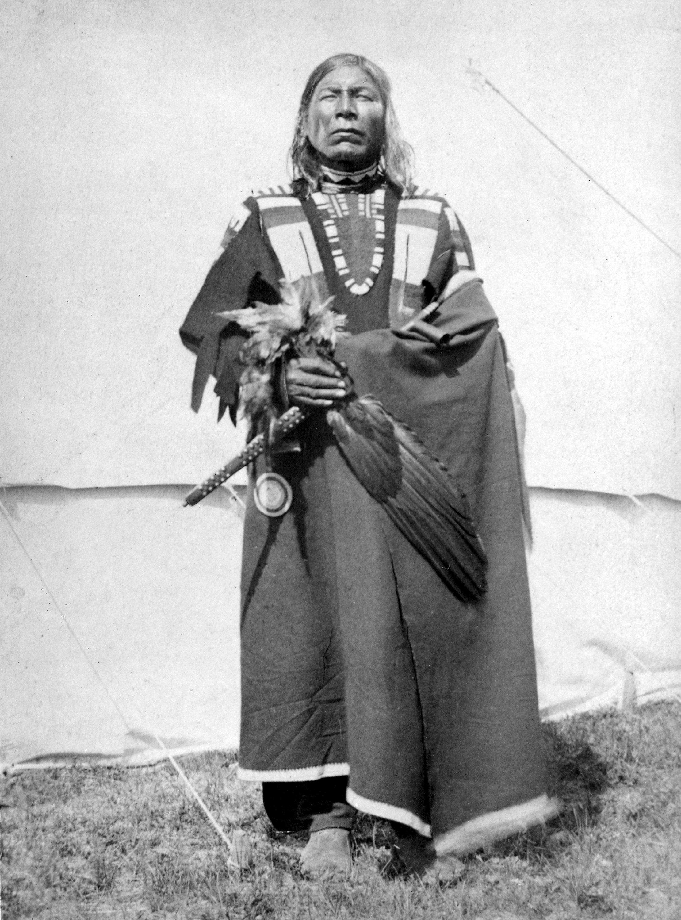 Paskwāw and his band settled on this reserve, but his intrigues did not end. In the spring of 1878 he journeyed to Winnipeg, for an interview with Lieutenant Governor Joseph-Édouard Cauchon of Manitoba. The chief complained that food and building materials promised to him had not been delivered. He also declared that there was much unrest among the Plains Indians which could be alleviated if the government were to provide him with enough food and tobacco to hold a great feast for all these Indians, at which he would speak in favour of the Canadian government’s policies. Indian Department officials interpreted this suggestion as a scheme by Paskwāw to increase his personal influence with other bands, and denied that food or building supplies had ever been promised him. In 1882 Paskwāw headed a movement of the Indians in the Fort Qu’Appelle area against the government’s policy of paying annuities to each band on its own reserve, rather than at a mass gathering at Fort Qu’Appelle. The Indian Department officials alleged that the Indians wished to be paid their annuities at large assemblies in order to intimidate the small party of officials, forcing them to distribute more provisions and to make more promises than the government thought desirable. Paskwāw had initially declared that he would not take his money but quickly capitulated on discovering that his own band would not support him.