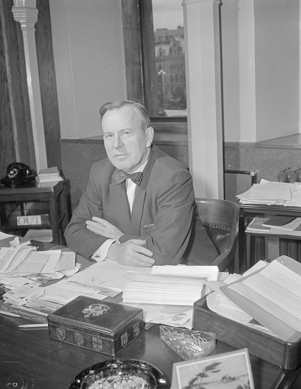 The papers of John George Diefenbaker at the Right Honourable John G. Diefenbaker Centre for the Study of Canada, Univ. of Saskatchewan (Saskatoon), provide a sustained criticism of Pearson’s political career. Before he became a minister in the Pearson government in 1967, Pierre Elliott Trudeau had also been a frequent critic of Pearson and his remarks are found in his papers at Library and Arch. Canada (MG 26, O). Other collections with Pearson material include the Arnold Danford Patrick Heeney fonds (MG 30, E144) and especially the Walter Lockhart Gordon papers (MG 32, B44), both at Library and Arch. Canada, the Tom Kent fonds at Queen’s Univ. Arch. (Kingston, Ont.), and the Bruce Hutchison fonds (MsC 22) at the Univ. of Calgary Library, Special Coll.