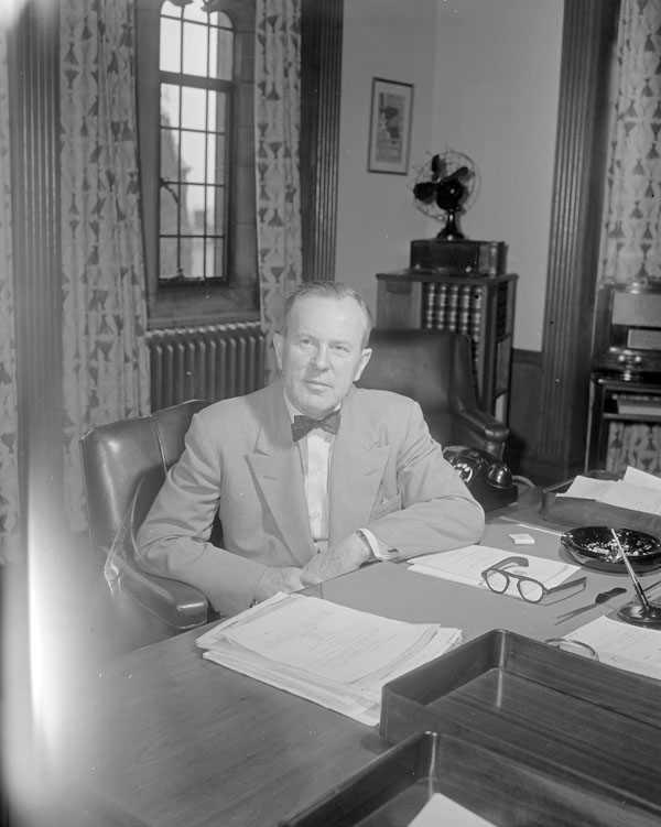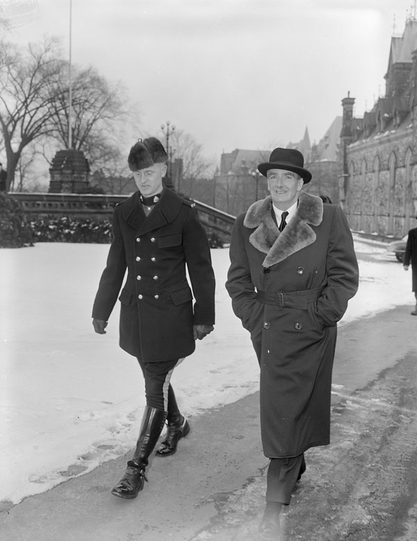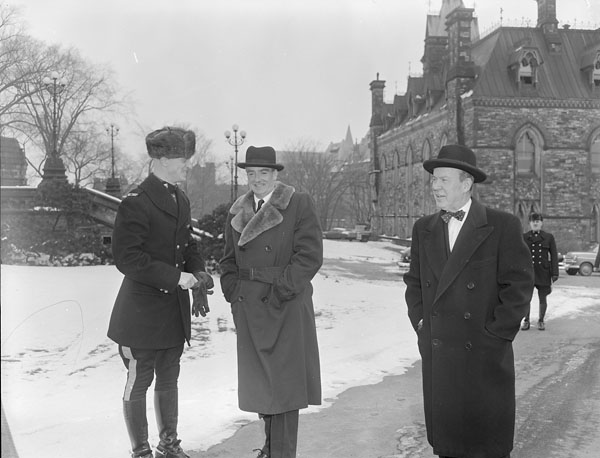 The Cold War between the Soviet Union and the west was young but fierce during Pearson’s tenure as under-secretary. The Soviet use of the veto handcuffed the UN’s Security Council and Soviet influence in eastern Europe became control as coalition governments in nations such as Czechoslovakia and Poland fell to Communism. Although the war’s end did not bring depression as it had in 1919, the economic future was uncertain, since Canada’s traditional European markets were either destroyed or, in the case of Britain, essentially bankrupt. Pearson took three major policy initiatives between 1946 and 1948. First, he continued to hope that the UN would gain strength and, much to King’s despair, he backed UN involvement in the settlement of conflict in Korea and in other troubled areas such as Palestine. Secondly, he recognized the economic and political predominance of the United States. The shortage of American dollars in Canada was solved initially by a special arrangement and Pearson was willing to work out a free trade agreement with the Americans. King stopped the free trade negotiations, fearful of their political impact. Finally, Pearson tried to balance American influence by the creation of the North Atlantic Treaty Organization (NATO), and he argued strongly for a socio-economic component to the pact. He played a major role in the discussions and persistently urged Canada’s chief negotiator, Hume Wrong, to take a broad approach to the treaty. By the time the pact was finally signed in Washington in the spring of 1949, his numerous accomplishments had gained him further recognition. With the strong encouragement of King and St-Laurent, he entered politics and was appointed secretary of state for external affairs in the St-Laurent government on 10 Sept. 1948. He ran successfully for a seat in the House of Commons in a by-election in Algoma East on 25 October and retained the seat in the general election of 1949, in which St-Laurent’s government won a resounding victory. He would represent the riding throughout his political career.