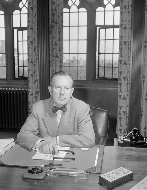 Pearson quickly captured attention, especially from the American news media. He became a minor celebrity on a radio quiz program and, significantly, a close friend of several major American journalists. His diplomatic colleagues noted his skill in presiding over committees and in July 1943 he became the chair of the United Nations Interim Commission on Food and Agriculture. The committee was to become the Food and Agriculture Organization of the UN in October 1945. Pearson would decline the chance to head the new institution. From 1943 to 1946 he also chaired the important committee on supplies of the United Nations Relief and Rehabilitation Administration. On 1 Jan. 1945 he became Canada’s second ambassador to the United States (earlier representatives had been ministers). He had become one of the foremost diplomats of the time and, in Canada, a public figure.