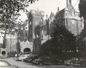 In late 1913, in the midst of development work, the Pellatts moved into their own grandiose but unfinished mansion looking south over the city. In 1903–5, in his wife’s name, Henry had bought lots on the escarpment, already called Casa Loma, near the stately houses of music dealer Samuel Nordheimer and entrepreneur Albert William Austin. His interest in residential glory befitting his self-perceived status was no secret. The name Casa Loma, meaning house (on a) hill, had romantic connotations in art and literature, and Pellatt relished the imagery. The building was his greatest architectural initiative. He would later explain his goals in different, sometimes unlikely, ways. A habitation, a soldiers’ hospital, and a military museum and library emerged often; to one journalist he confessed, “I intended it for a spectacle.” Its creation, he boasted, “gave vent … to an architectural flair which I exercised, in study and observation, all over the world.” To design the complex Pellatt chose his favourite architect and Sherbourne Street neighbour, E. J. Lennox, rather than a cutting-edge designer, and good ones were available in both Toronto and Montreal. Lennox indulged Pellatt’s liking for castles, grand hunting lodges, and mansions in Europe, and he was given a bottomless budget. Construction began in 1905 on a temporary cottage dwelling and a massive stable; in late 1909 work started on the main building, formed of grey-brown sandstone with white, cast-stone trim and red tile roofs. Its irregular plan contains a square north tower above a massive porte-cochère, a round western tower of five storeys, and a dramatic eastern tower. Between them are crenellations and lofty chimneys. Within are nearly 100 rooms, including a library for 10,000 books, and state-of-the-art electrical systems.