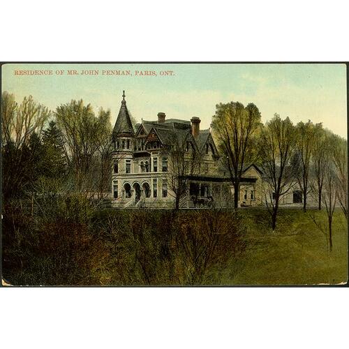 Penman was described as “reserved” by his grand-nephew, Harold Penman Smith. He was always formally dressed, even at his summer home in Ontario’s Muskoka region. A devout Presbyterian, each morning he read scripture to the family and servants and led them in prayer. He served as an elder in the church for 26 years and contributed funds to its missions in China and India. Between 1897 and 1928 he sat on the local, national, and international committees of the Young Men’s Christian Association (YMCA), and he underwrote the construction of a YMCA facility in Hankou (Wuhan), China. Penman was also generous to the town of Paris, donating a YMCA building in 1905 and helping erect the Central School in 1908. To support female employees and to maintain his mills’ responsibility in the eyes of the community and future recruits, he financed the local Young Women’s Christian Association, and he sometimes subsidized university students and sent food hampers to the needy. He was also a member of the administrative board and the senate of Knox College, Toronto, but he never ran for public office, having retained his American citizenship.