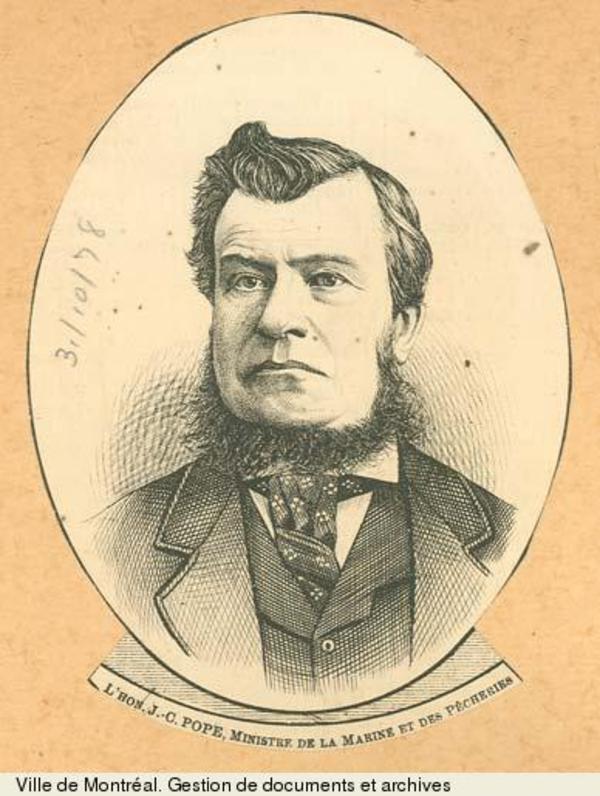 Material of relevance to Pope is scattered through the following collections of personal or family papers: the Tilley family papers at N.B. Museum (photocopies at PAPEI); the Sir John A. Macdonald papers at PAC (MG 26, A; mfm. at PAPEI); the Hunt coll., the Palmer family papers, and the Edward Palmer papers at PAPEI. Other manuscript sources of value include the following at the PAC: RG 42, ser. I, 150–71, 391–94, 462–63; at PAPEI: RG 1, Commission books, III: 1, 84–85; RG 6, Court of Chancery, Case papers, J. C. Pope, 1883; RG 9, Impost account, District of Bedeque, 1854; RG 15, Pope estate rent books, Lot 25, 1843–63; Lot 27, 1860–68; Lot 67, 1843–63; RG 16, Land registry records, Conveyance registers, liber 80: f.251; liber 82: ff.112, 556; liber 86: f.21; liber 87: ff.151, 231, 691; liber 89: f.904; liber 93: f.701; liber 97: f.846; Conveyance registers, Queen’s County ser., liber 9: f.142; liber 14: f.821; Land title docs., Lot 27, Leases, doc.314, 26 Jan. 1856; “List of rents due on township no.27” (1868); “List of tenants on half lot 27, with quantity of land held by each” (1868); at PRO, CO 226/88: 197–99; CO 226/104: 286–87, 312, 333–34. Relevant printed primary sources are as follows: CPC, 1876; P.E.I., House of Assembly, Journal, 1873, apps.A, EE; 1875, 29, app.E.; [Joseph Pope], Public servant: the memoirs of Sir Joseph Pope, ed. and comp. Maurice Pope (Toronto, 1960), 19–23, 27–34, 69.