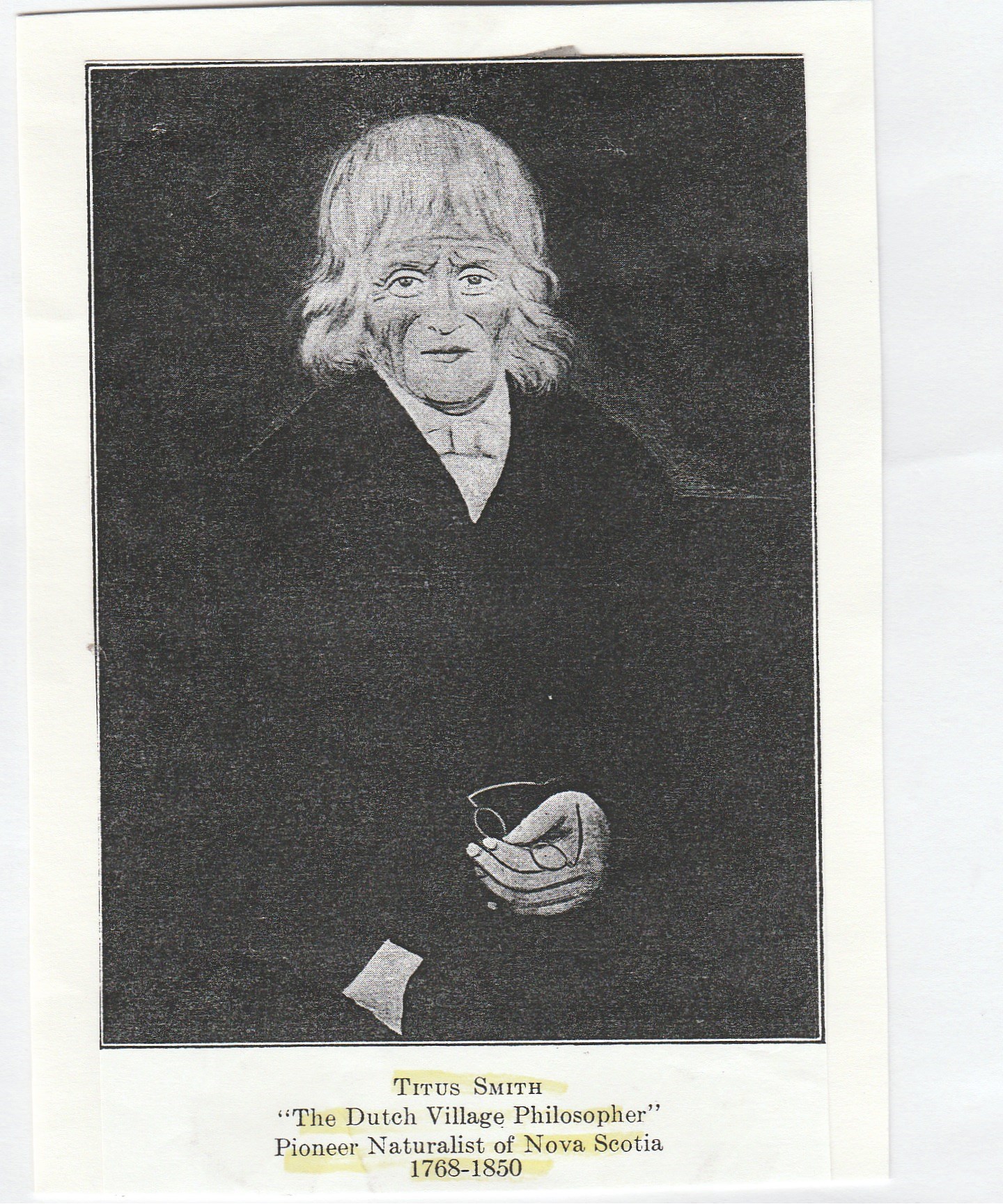 PANS, Map Coll., Nova Scotia general, “A map of Titus Smith’s Track through the Interior of Nova Scotia”; RG 1, 411, [no.144]; RG 34-312, P, 8, 18 March 1816. John Clarkson, Clarkson’s mission to America, 1791–1792, ed. and intro. C. B. Fergusson (Halifax, 1971). Acadian Recorder, 23 May 1829, 12 Jan. 1850. Colonial Farmer (Halifax). Novascotian, 3 July 1828, 7 Jan. 1850. Nova-Scotia Royal Gazette, 24 May 1808. Encyclopedia Canadiana. Sylvester Judd, History of Hadley . . . (Northampton, Mass., 1863). M. J. Katzmann, Mrs William Lawson, History of the townships of Dartmouth, Preston and Lawrencetown; Halifax County, N.S., ed. Harry Piers (Halifax, 1893; repr. Belleville, Ont., 1972), 205–18. Harry Piers, Titus Smith, “The Dutch Village Philosopher,” pioneer naturalist of Nova Scotia, 1768–1850 (Halifax, 1938). S. B. Elliott, “Titus Smith – the Dutch Village Philosopher,” Education Nova Scotia (Halifax), 4 (1974), no. 16: 1–2. C. B. Fergusson, “Mechanics’ institutes in Nova Scotia,” PANS Bull. (Halifax), 14 (1960): 32, 35. J. S. Martell, “From Central Board to secretary of agriculture, 1826–1885,” PANS Bull., 2 (1939–41), no. 3: 5. Harry Piers, “Artists in Nova Scotia,” N.S. Hist. Soc., Coll., 18 (1914): 139. T. M. Punch, “Maple sugar and cabbages: the ‘philosophy’ of the ‘Dutch Village Philosopher,’ Nova Scotia Hist. Quarterly, 8 (1978): 19–38. William Smith, “Some account of the life of Titus Smith,” Nova-Scotian Institute of Natural Science, Trans. (Halifax), 1 (1863–66), pt.4: 149–52. C. St. C. Stayner, “The Sandemanian loyalists,” N.S. Hist. Soc., Coll., 29 (1951): 81–82, 104–5.