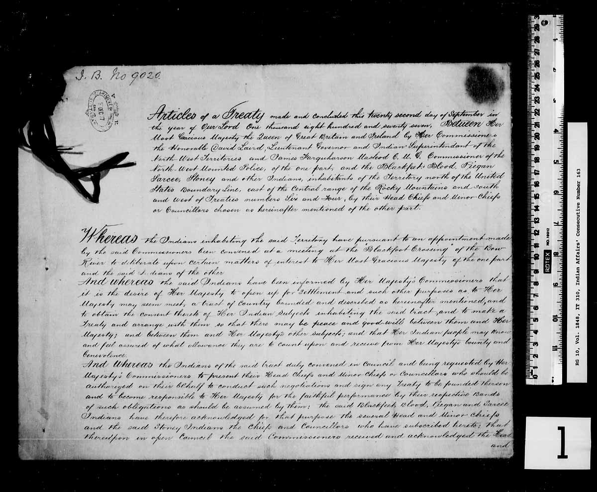When the bands gathered to sign Treaty No. 7 with the Canadian government in 1877, Rainy Chief, whose winter camp was now usually near the Red Deer River, was recognized by officials as the leader of all bands which camped in the northern part of the Bloods’ hunting grounds. Only two head chiefs were selected from the Blood tribe, the young and dynamic Mekaisto (Red Crow) for the south, and the older patriarch Rainy Chief for the north. The latter was chosen not only for his friendly attitude towards the whites, but also because of the strength of his position within the tribe. By signing Treaty No. 7, these Indians conceded their right to hunt in most of present-day southern Alberta. Rainy Chief was among the first of the chiefs to sign but died before his people were settled upon the reserves it provided.