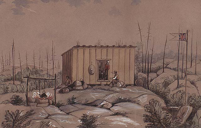 The Moodies bought a cleared farm in Hamilton Township, near Cobourg, Upper Canada, and in so doing chose a different course of settlement from that of other well-known writing families, such as the Traills, Langtons, and Stewarts, all of whom settled, immediately following their arrival, on uncleared land in the Peterborough area. These families, therefore, did not encounter the “Yankee” neighbours who were the source of many frustrating experiences for the Moodies and who also provided the material for subjects in literary sketches. A poor financial investment followed by a decision to sell the farm in 1834 and move to Douro, a backwoods township north of Peterborough, together with the expenses of settling in the backwoods, severely strained the Moodies’ financial resources. The move, however, did have the advantage of placing the family nearer to Samuel, the Traills, and friends. Over the next five years the Moodies again attempted to establish a farm, but were unsuccessful and abandoned farming in late 1839 when Dunbar received an appointment as sheriff of the Victoria District (after 1849 of Hastings County). The family moved to Belleville in January 1840 and it was probably there that Susanna wrote the sketches and stories of backwoods life which eventually appeared as Roughing it in the bush.