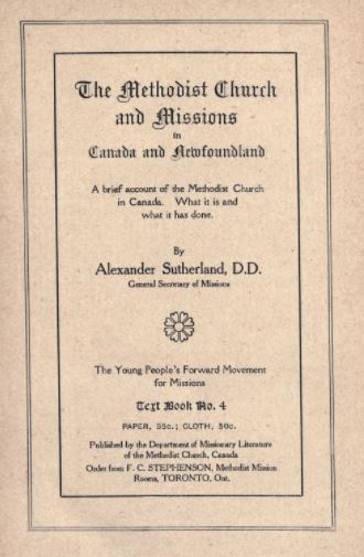 Alexander Sutherland’s personal papers in UCC-C, 3182, include many of his sermons dated between 1883 and 1910, as well as his general correspondence and his private letterbooks. His official correspondence as general secretary of the Methodist Missionary Soc. is also found in the UCC-C, at 14/2/2 (copy-books of outgoing Alexander Sutherland corr.) and 14/2/4 (incoming Sutherland corr.). For papers relating to the Saskatchewan Land and Homestead Company, see AO, F 1006, no.29.