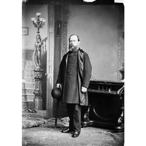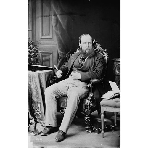 Trutch’s political influence was waning and the other aspects of his office did not compensate. He was responsible for setting up federal institutions in British Columbia, and he was Ottawa’s minister of patronage in the province. He continued to have an influence on Indian land policy. As lieutenant governor he was also the agent of the imperial government and was a strong advocate of the British case against the United States in the San Juan Island and Alaska boundary disputes. And yet he was becoming bored with his position, which no longer demanded all his energy. Some more challenging business enterprise would have been more to his liking. His enthusiasm was piqued by Prime Minister Sir John A. Macdonald*’s plans to establish the Canada Pacific Railway Company and he assisted by raising some of the preliminary capital in British Columbia. But the scheme went up in smoke with the Pacific Scandal of 1873. When Macdonald and the Conservatives were replaced by the Liberals under Alexander Mackenzie*, the railway was on hold and Trutch had lost his influential contacts in Ottawa.