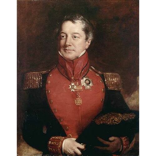 Matthew Aylmer was only 10 when he succeeded his father in the ancient Irish barony of Aylmer and 12 when he entered the 49th Foot as an ensign. He became a lieutenant in 1791 and a captain in 1794. In 1798 he participated in an abortive British raid on Ostend (Belgium), was captured, and spent six months in a French prison. He won high praise from his commanding officer, Lieutenant-Colonel Isaac Brock*, for his role in the battle of Egmont-op-Zee (more properly Egmond aan Zee, Netherlands) in 1799. Two years later he rose to the rank of major in the 85th Foot, and in 1802 to lieutenant-colonel; however, he was then placed on half pay until June 1803 when he joined the Coldstream Foot Guards. On 25 July 1810 he became a colonel and an aide-de-camp to the king and on 4 June 1813 a major-general. He served as the assistant – and then from January 1812 as the deputy – adjutant general to Lord Wellington’s army and commanded a brigade in several major battles of the Peninsular War, during which he was awarded the Military Cross with one clasp. He was given a kcb on 2 Jan. 1815 and knighted on 6 June. In 1814 he had been appointed adjutant general of the British forces in Ireland, where he remained until 1823. From 1823 to 1830 he was without employment and spent much of his time wandering across Switzerland and Italy. He was promoted lieutenant-general on 27 May 1825 and that year, upon the death of his uncle, the Earl of Whitworth, he changed his family name to Whitworth-Aylmer. He was made colonel of the 56th Foot in 1827 and transferred to the 18th Foot five years later.